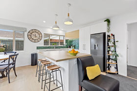 Step inside to a warm and inviting home where thoughtful renovations shine. The modern kitchen has been refreshed with a large breakfast bar, perfect for casual meals or keeping an eye on the children while you cook. Flowing from the kitchen, the open plan dining and living areas feature new flooring, creating a fresh, cohesive space for everyday living and entertaining.