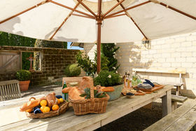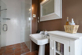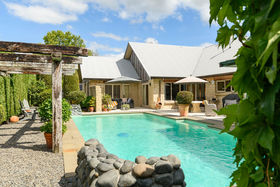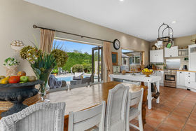 French country style is not at all avant-garde or untouchable - it's a warm and inviting. This is evident in the kitchen dining and family area, grouped together to share. Light-filled with terracotta tile flooring and generous proportions. Large windows and bifold doors, creating a bright and welcoming atmosphere. The space is thoughtfully designed for both relaxation and entertaining. Equipped with a closed wood fire and heat pump, choose from old-fashioned pleasure or modern convenience.