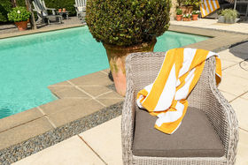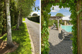 There are many relaxing and entertaining spaces that serve up an extra measure of privacy form each other. Centre to the outdoor living is the aqua blue pool which gleams under the sun, complete with classical water fountains at both ends. A maximum depth of 1.95 metres and shallow areas for the younger folk, it has a heating option for comfort on cooler days. It is bordered by pale stone paving, tall sculptured greenery and lush hedging.