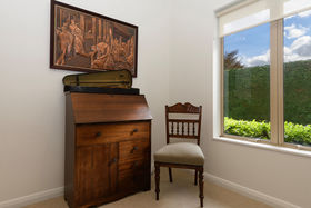 Bedroom four is tranquil and quiet, ideal for restful sleep without distraction from a bustling household. Perfect for visitors or nursery space. A work space/office is located off the entry way, also offer quiet separation from daily living.