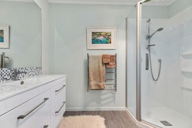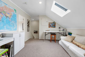 The generous master suite is privately positioned on the ground level, complete with a walk-in wardrobe and ensuite. Upstairs, two additional bedrooms are complemented by a family room, ideal as a second lounge, playroom or work from home space. A heat pump ensures year-round comfort, while the double internal-access garage provides excellent storage.